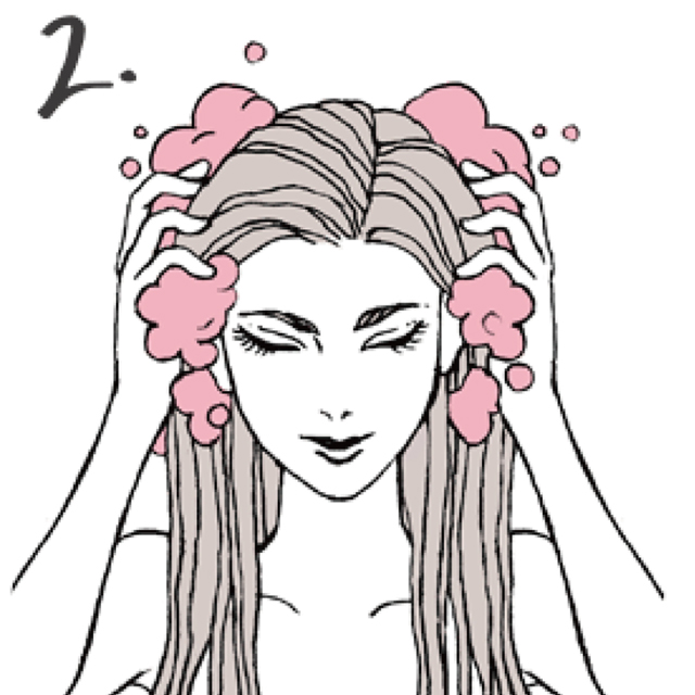 根本から毛先まで髪全体を包むように泡立てます。