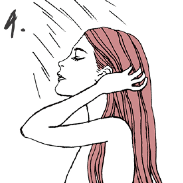 泡がムラなく行き渡るように髪全体を揉み込むようにして洗います。
