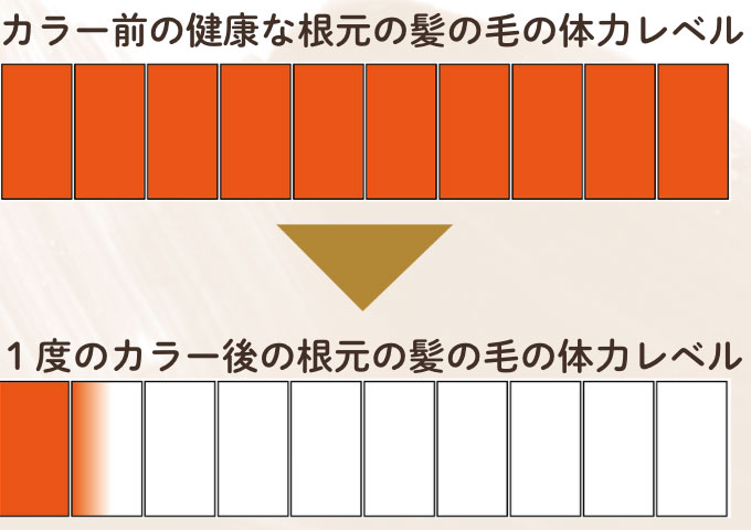 カラー材に含まれるジアミンや過酸化水素は頭皮や毛根に剌激を与えます。