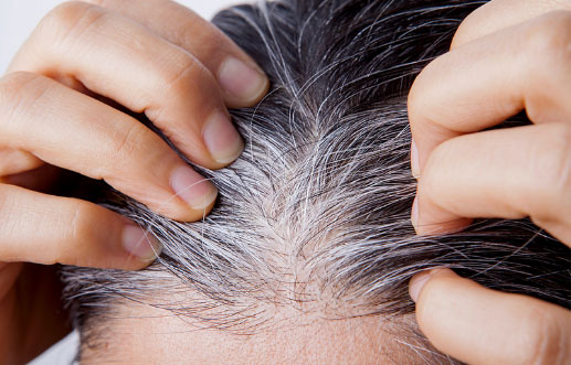 剌激を受けた頭皮は炎症、血流の低下により、毛根のメラノサイト(色素を作る細胞)の機能を低下させ、白髪になりやすくなります。
